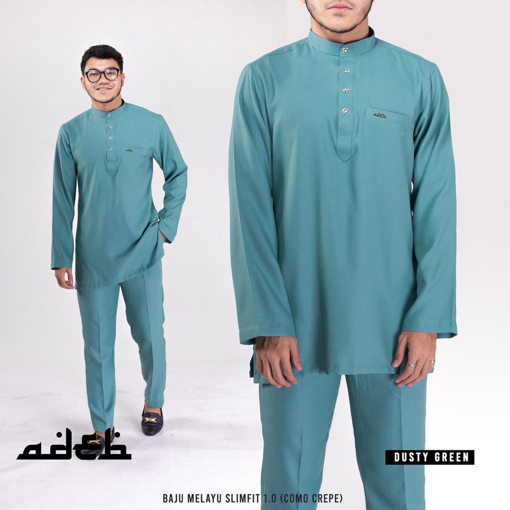 Baju Melayu Moden Slim Fit Dusty Green Shopee Singapore