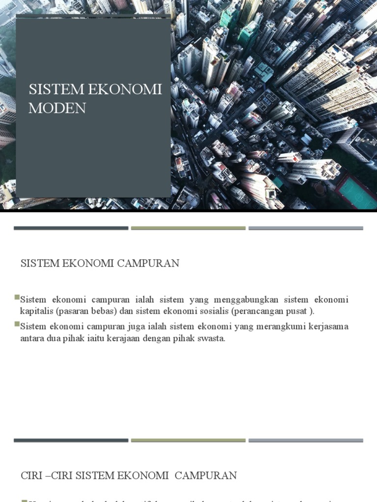 Ciri sistem ekonomi moden. Sistem telekomunikasi juga dimajukan. Ciri Ekonomi Tradisional Sep. A Modal yang besar b Tanah c Penggunaan teknologi moden d Tenaga buruh yang ramai e Pengeluaran dalam skala besar f Air laut SEJARAH TINGKATAN 3.