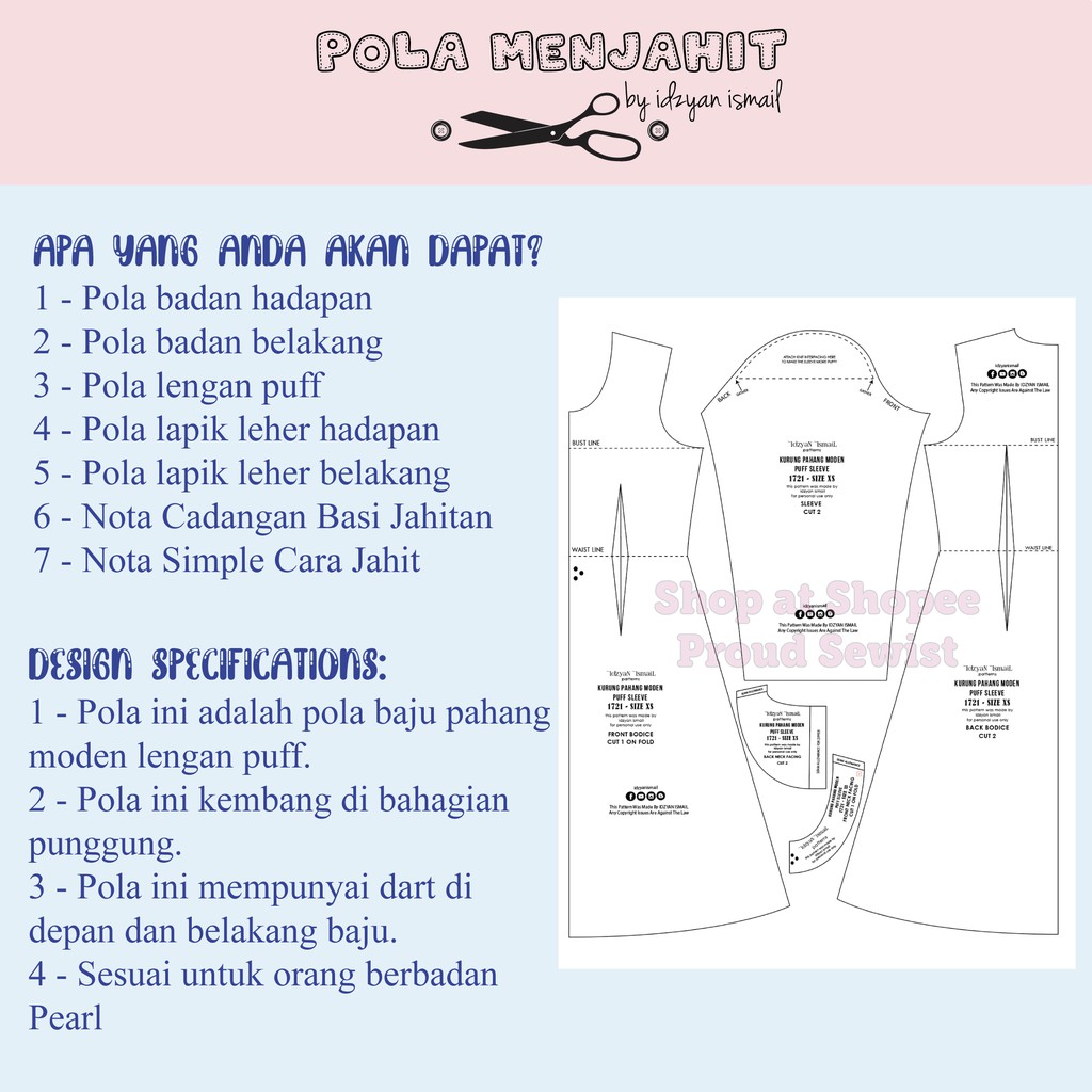 Assalamualaikum Belajar lihat pada gambarajah Ukuran adalah untuk saiz L terima kasihsemoga bermanfaat kepada yang membaca dan yang. Pola juga dapat menjimatkan masa dalam proses menjahit baju. Petrina Aqua RM 17900 RM 15900.