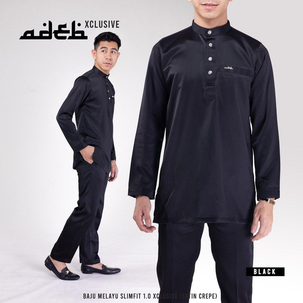 Baju Melayu Slimfit Adebxclusive Satin Black Shopee Malaysia